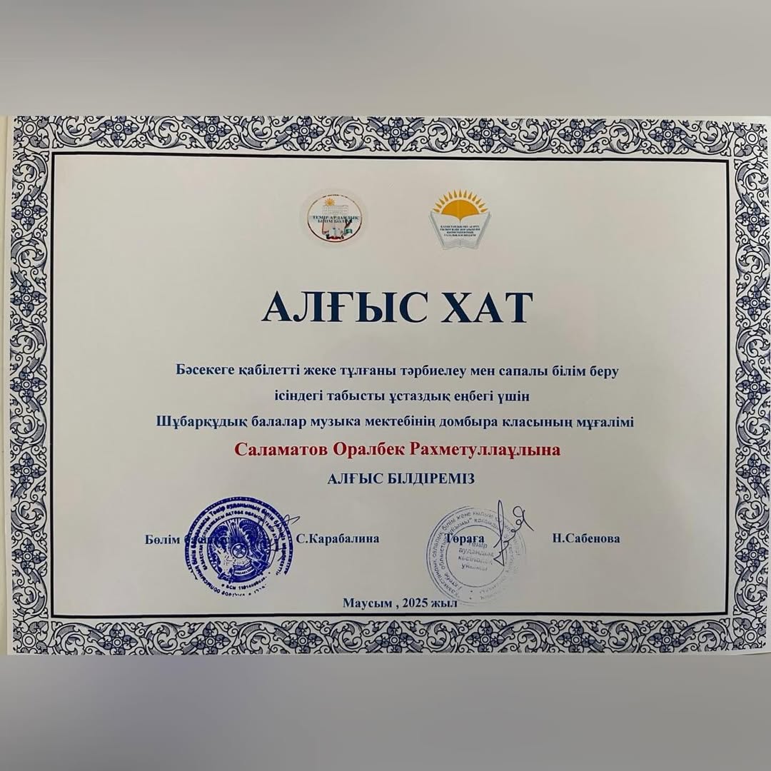 Жас ұрпаққа эстетикалық білім беру, ұлттық және әлемдік музыка өнері жайында мағлұматтар беру, музыкалық аспаптың бірінде ойнай білу немесе мектептің мүмкіндік аумағындағы өнер түрлері бойынша орталау дәрежедегі музыкалық білімі бар адамды дайындау міндетін қамтамасыз етеді.